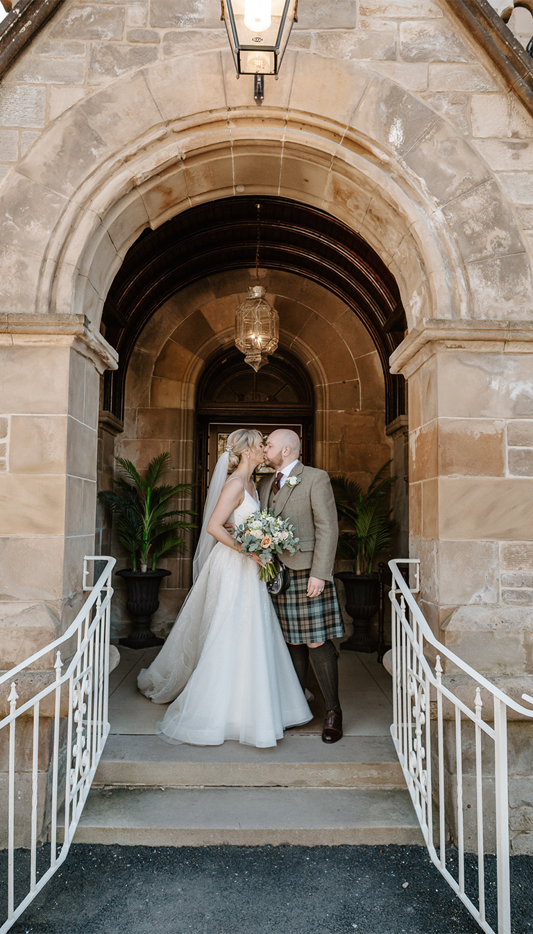 Cornhill Castle offers a wide range of stunning photography opportunities, whether you prefer timeless elegance or natural charm. Here are some of our favourite backdrops from Jenny and Mike’s big day:
